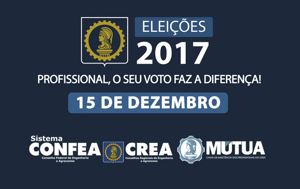 Dia 15 de dezembro ocorrerão as eleições para escolha dos presidentes do Confea, Conselho Federal de Engenharia e Agronomia, e do CREA-RS, Conselho Regional de Engenharia e Agronomia do Rio Grande do Sul bem como para os cargos de diretores Geral e Administrativo da Mútua RS. As eleições serão na sede e nas Inspetorias do CREA-RS, dia 15 de dezembro, das 09 às 19 horas.
