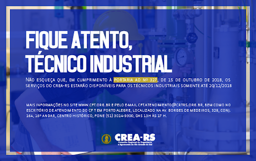PIF na área industrial de Erechim gera 201 relatórios de fiscalizações   Plenária 1.782 do CREA-RS aprova calendário de janeiro de 2019