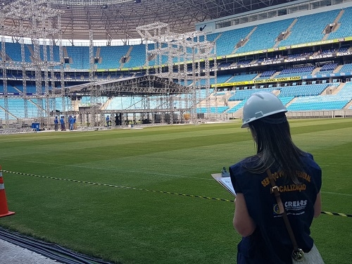 Ação de fiscalização do Fórum dos Conselhos   Fiscalização do CREA-RS verifica montagem do show do Roberto Carlos