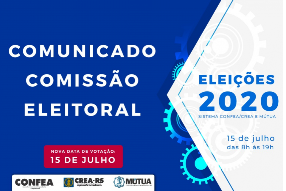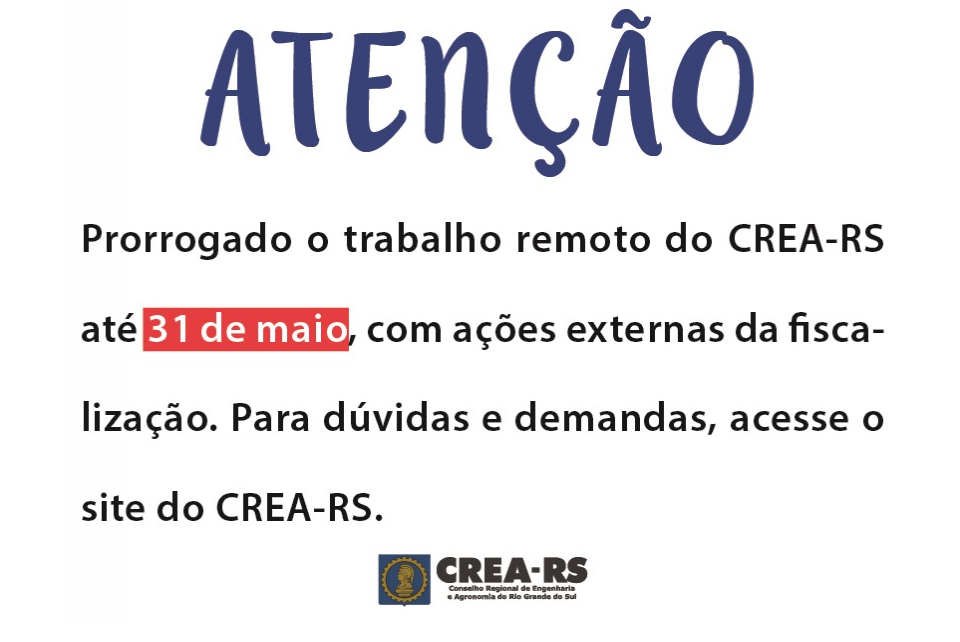 Profissional, mudou o calendário eleitoral. Fique por dentro   CREA-RS prorroga teletrabalho até 31 de maio, com ações externas da fiscalização