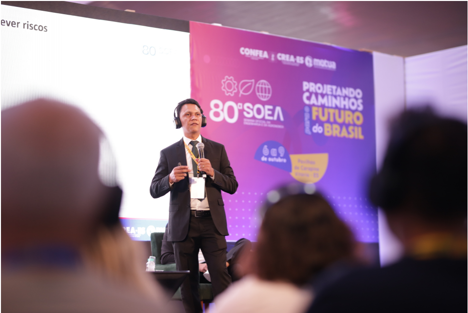 A remodelação das práticas preventivas foi objeto da fala do engenheiro de segurança do trabalho André Luís de Brito Alves. Créditos: Sto Rei e Impacto /Confea