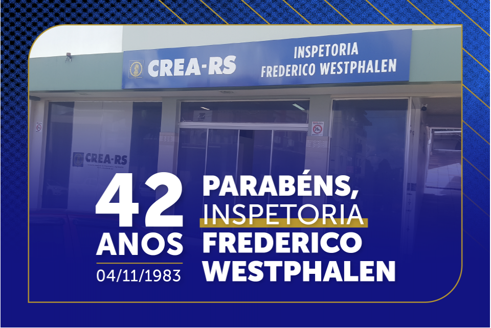 Neste 4 de novembro, o CREA-RS celebra os 42 anos da Inspetoria de Frederico Westphalen. Integrante da Zonal Alto-Uruguai, a Regional atende 17 municípios e reúne mais de 800 profissionais registrados, desempenhando um papel fundamental no fortalecimento das atividades técnicas e na defesa da sociedade.