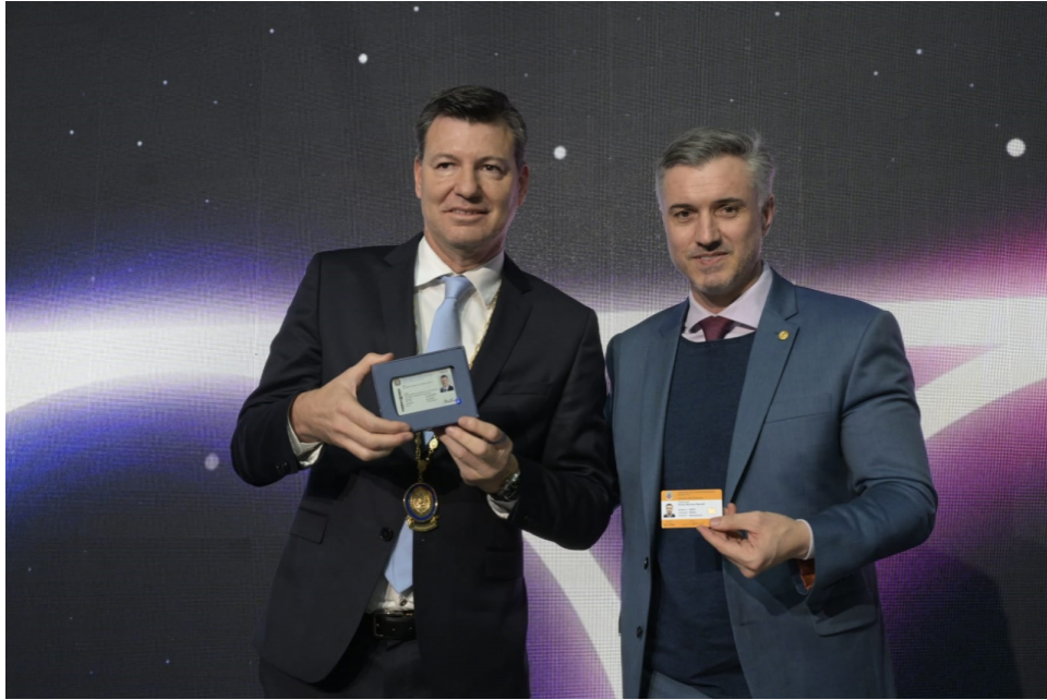 Ao comemorar 89 anos, nesta segunda-feira (24/11), a Ordem dos Engenheiros (OE), entidade representativa dos profissionais portugueses, celebra também o Dia Nacional do Engenheiro. A programação comemorativa ocorreu neste final de semana, na Alfândega de Porto. A sessão solene do evento, apresentada pela diretora de Relações Públicas da Ordem dos Engenheiros, Sofia Gonçalves, foi marcada por homenagens, assinatura de convênios, posse de conselheiros e pela troca simbólica de cédulas profissionais entre o presidente do Confea, eng. Vinicius Marchese, e o bastonário Fernando Santos, e seus consequentes registros profissionais recíprocos nas entidades.